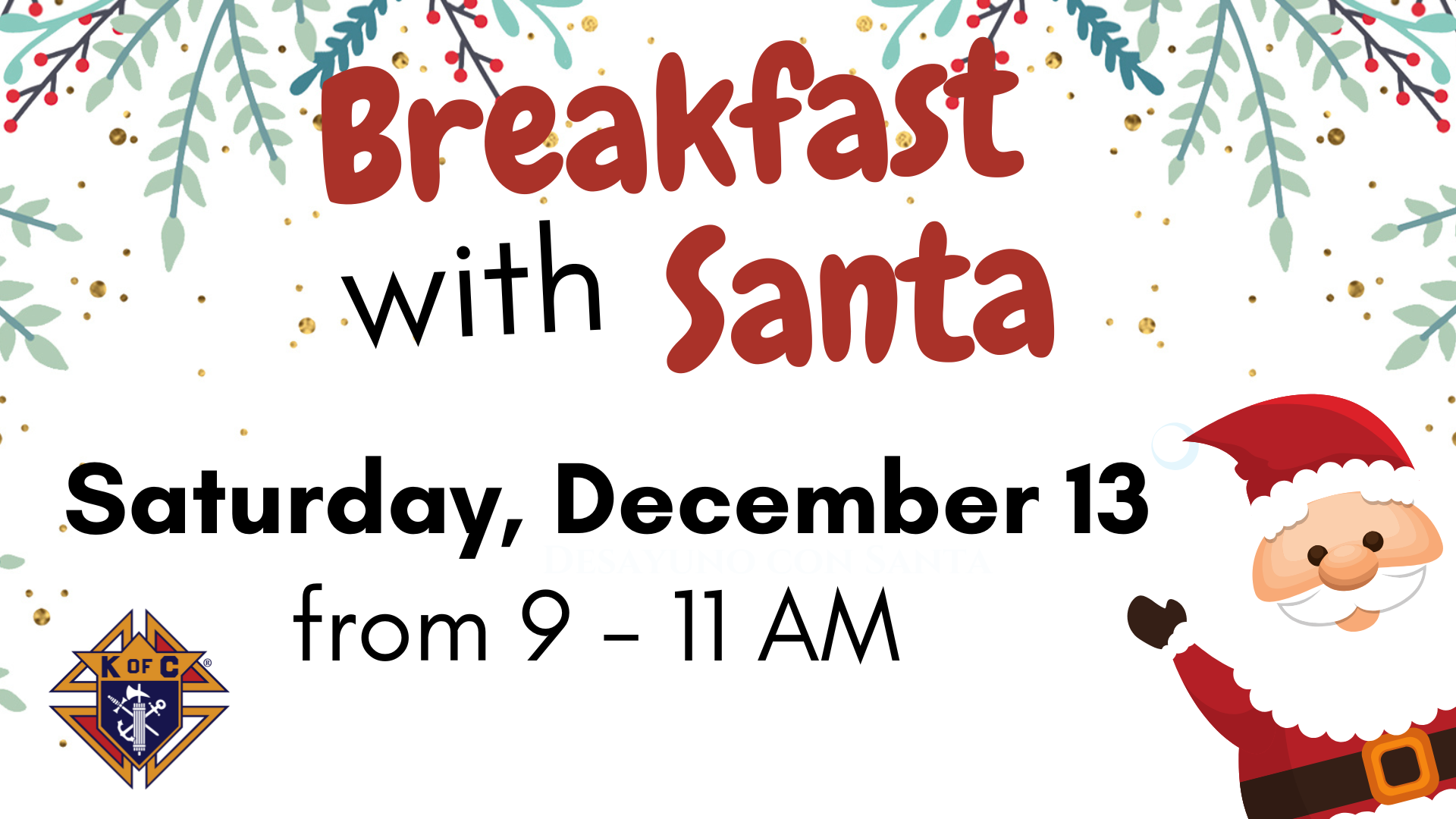 It’s that time of the year! The Knights of Columbus will be hosting a breakfast with Santa on Saturday, December 13 from 9 - 11 AM in the Family Center.