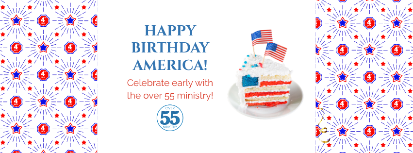 The May Over 55 Ministry luncheon will be held on Friday, May 8th at 12:30 in the Multi-Purpose room. Join us as we celebrate America’s 250th Birthday - a bit early. Bring your lunch and beverage. Snacks will be provided.