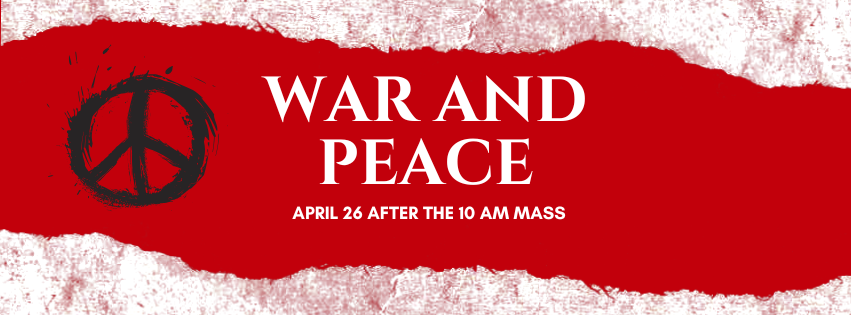 The War and Peace Session will be facilitated by Cullen Larson, retired director from Catholic Relief Services (CRS), the official international humanitarian agency of the US Catholic community. Cullen and his wife Lola Larson joined St. Andrew parish earlier in 2021. Cullen’s CRS work frequently focused on how Catholic social teaching principles inform the work of CRS. He has often presented on CST in parish, diocesan, university, and other Catholic settings. He earned an undergraduate degree in theology and philosophy (Loyola University, New Orleans), and a master of pastoral studies degree (Spring Hill College, Mobile), and holds a master of public administration (University of Georgia), and a law degree (Emory University). His favorite quote from the Catholic Catechism is: “The Eucharist commits us to the poor.”(CCC #1397)