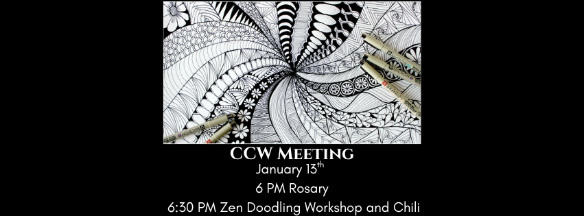January 13, 2026 - 6p.m. Rosary. 6:30p.m. Zen Doodling Workshop and Chili.