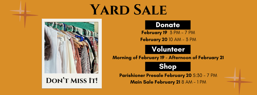 Clean out those closets! Our parish yard sale is coming soon!
